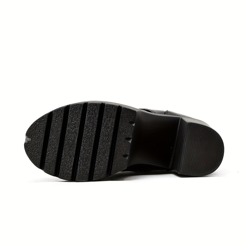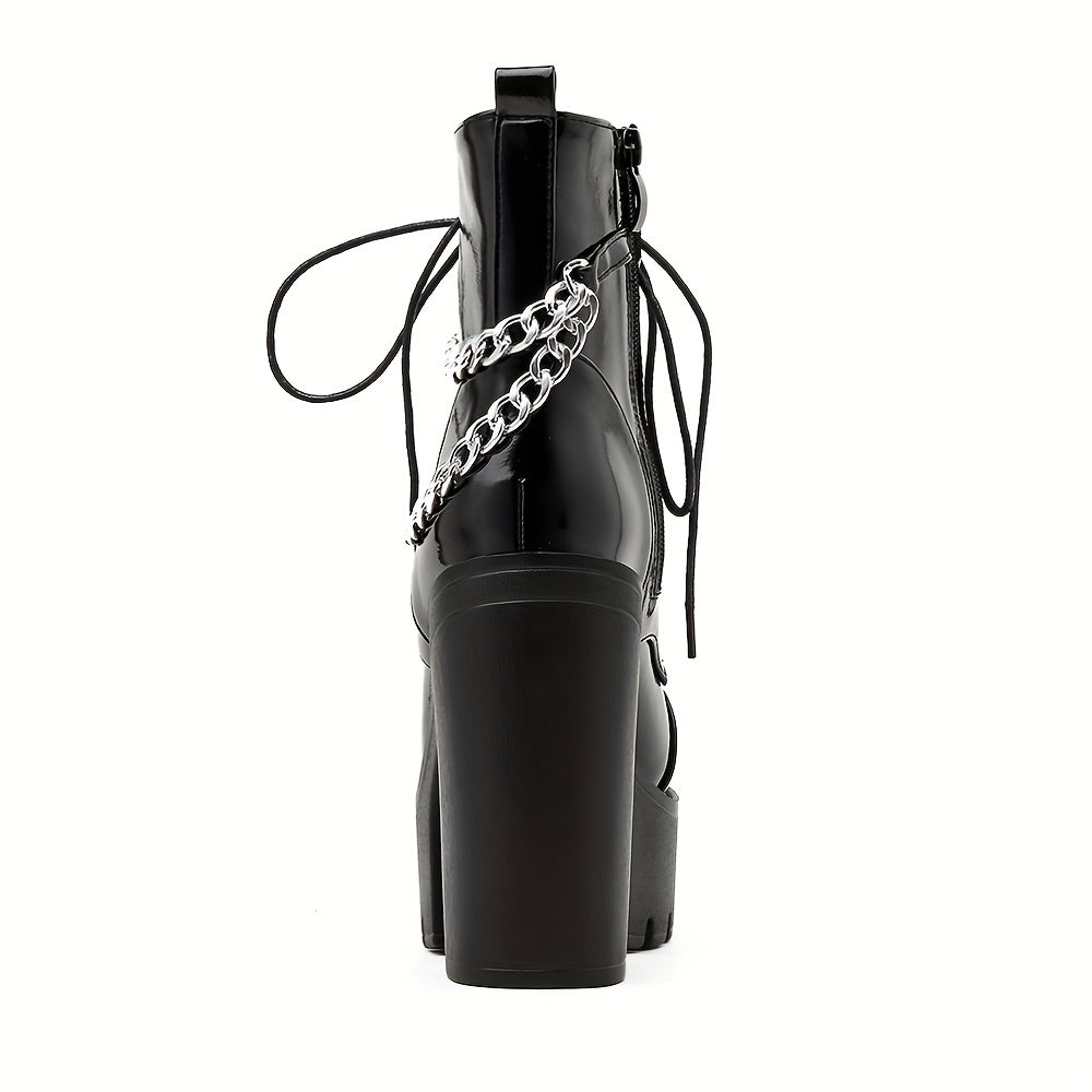 Women Black Gothic Ankle Boots High Heels Lace-Up Chain Decor