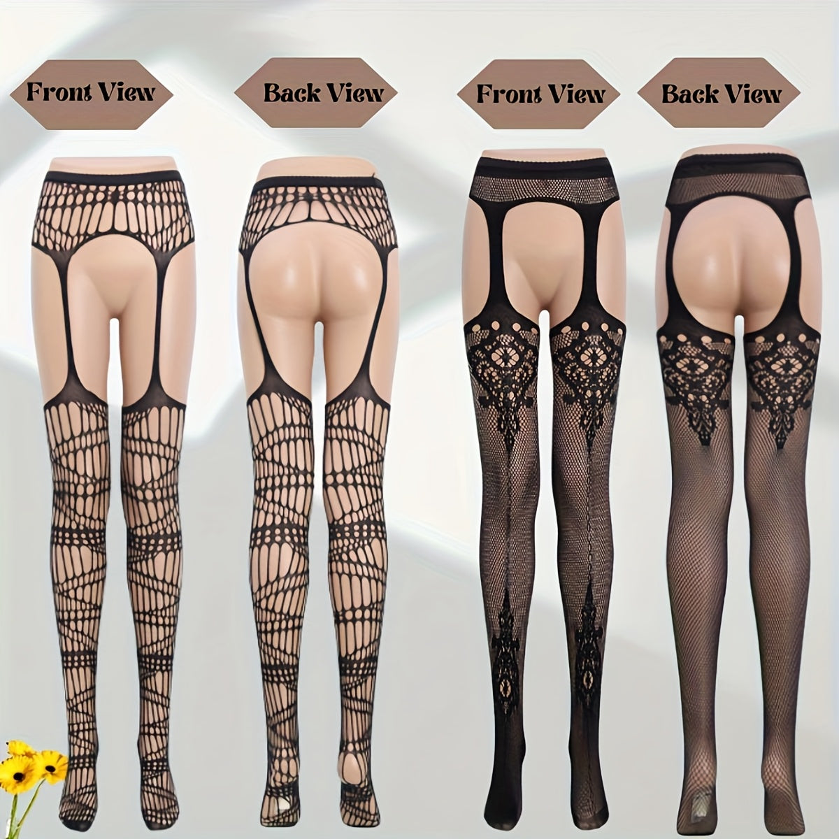 Women Fishnet Stockings 5 Pairs High Waist Garter Hollow Open Underwear