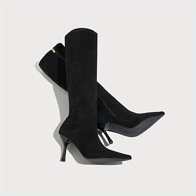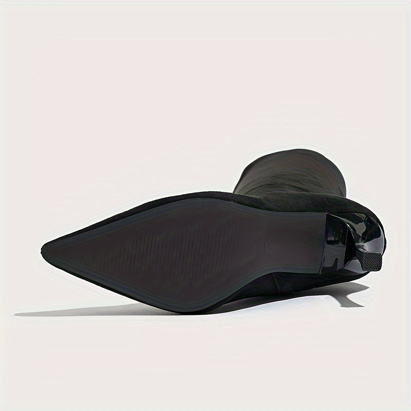 Women High Heel Ankle Boots Stretchy Zipper Pointed Toe Solid Color