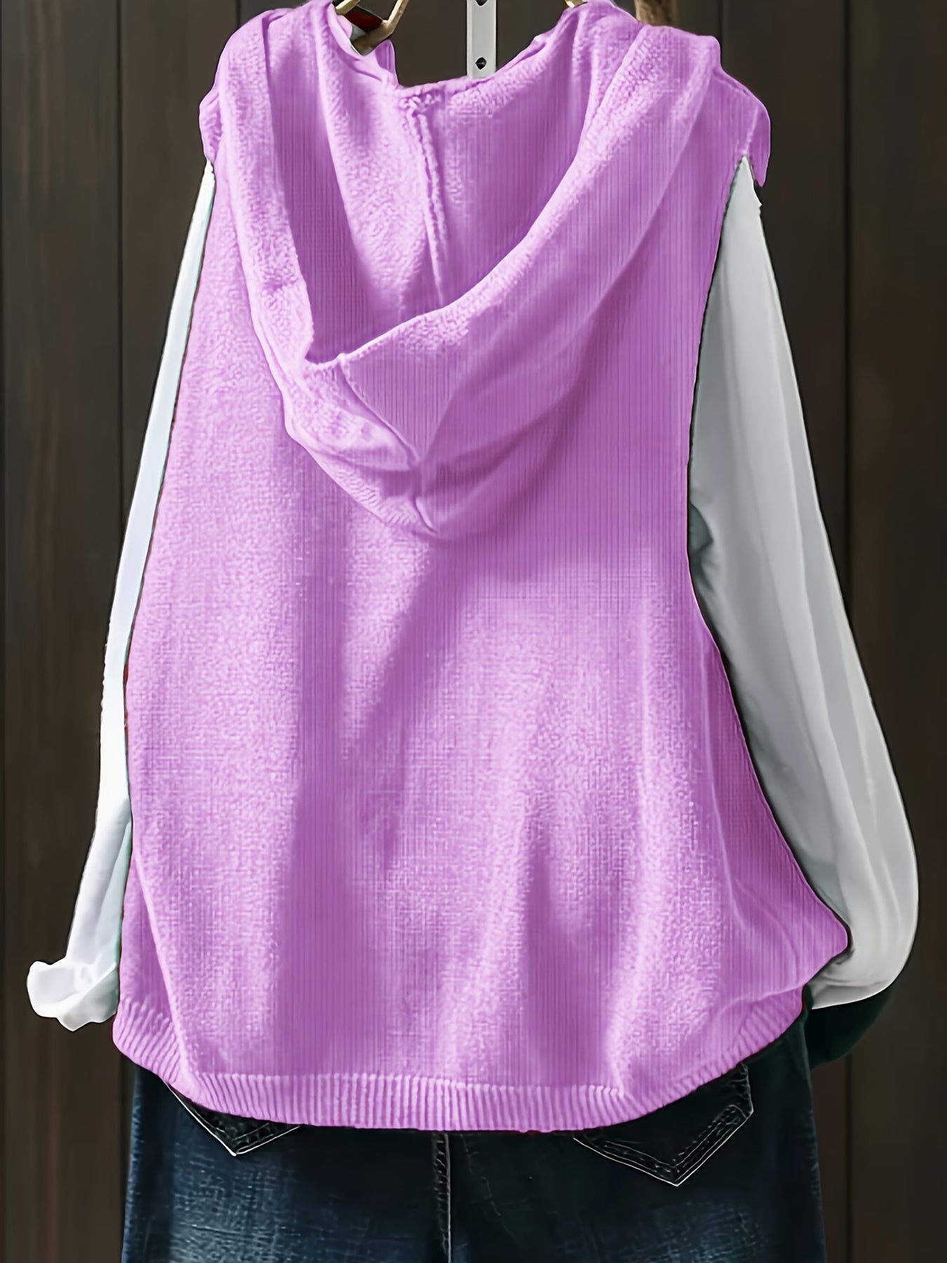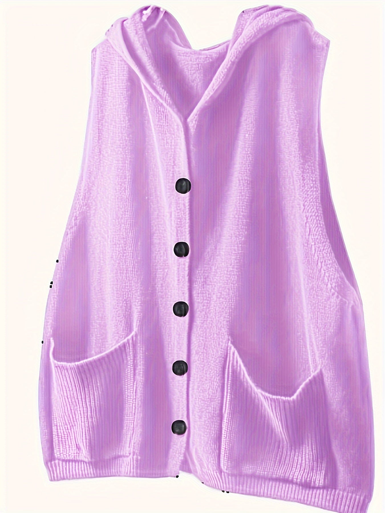 Women Knitted Sleeveless Vest with Double Pockets and Button Closure