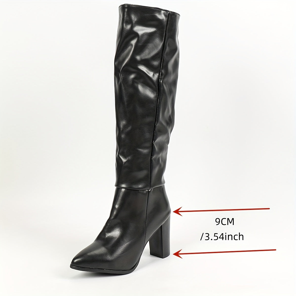 Women Pleated Knee-High Boots Plus Size Warm Shoes High Heel