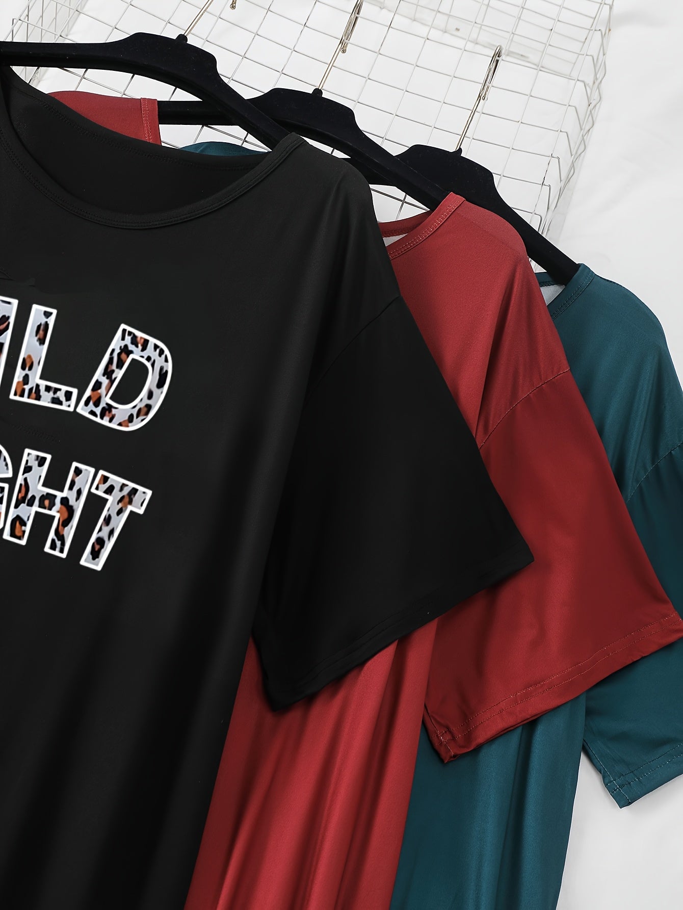 Women's 3pcs Letter Print Sleepwear Soft Stretch Short Sleeve Pajamas