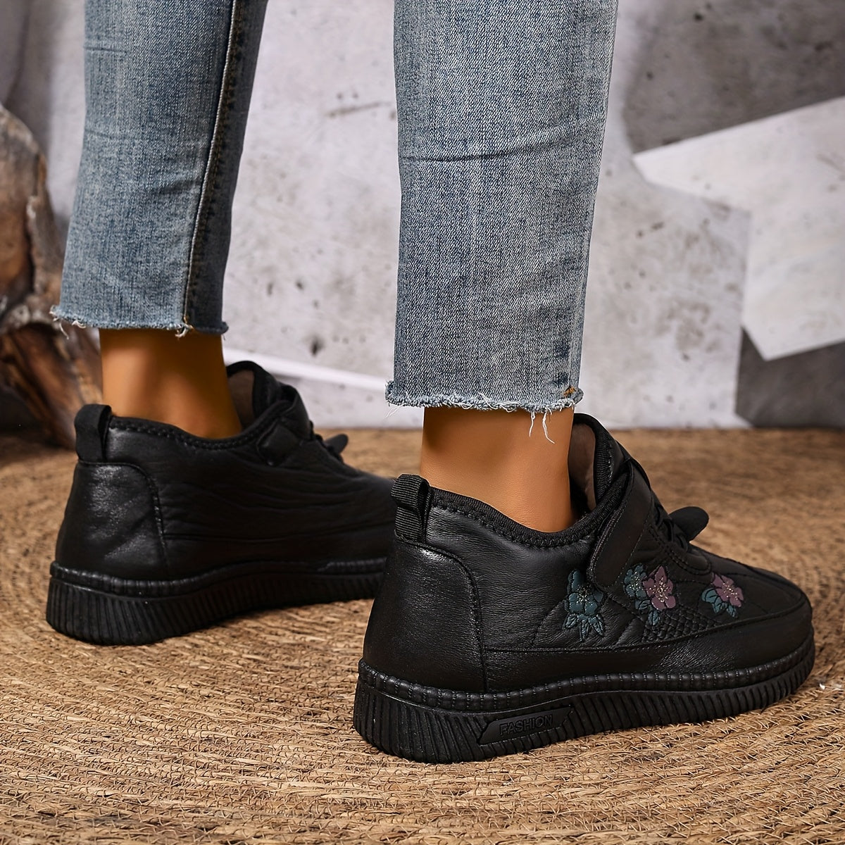 Women'S Ankle Boots Faux Fur Winter Snow Boots With Floral Design