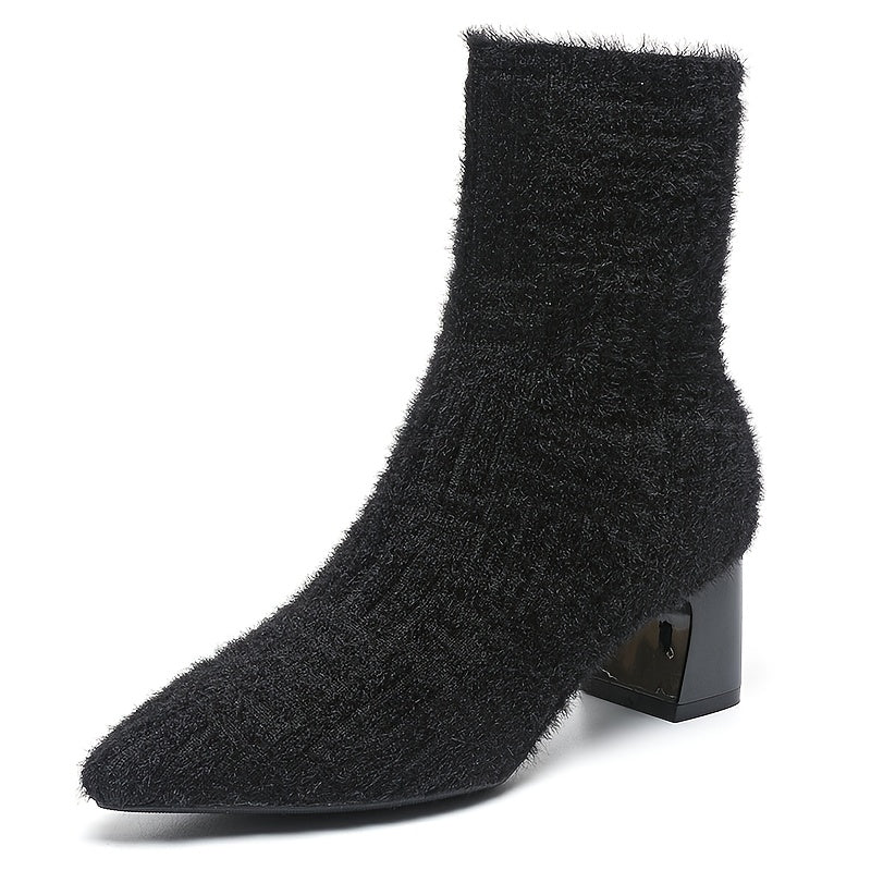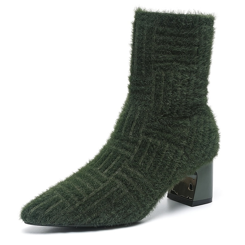 Women's Ankle Boots Knit Fabric Block Heel Slip-On Casual Styles