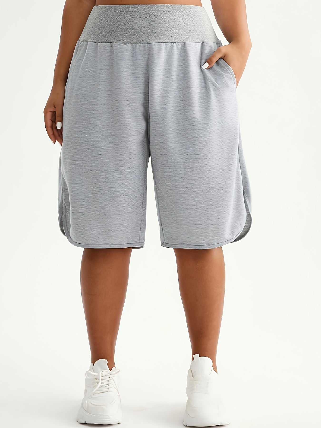 Women's Athletic Cropped Shorts Breathable Stretchy Pockets Gray