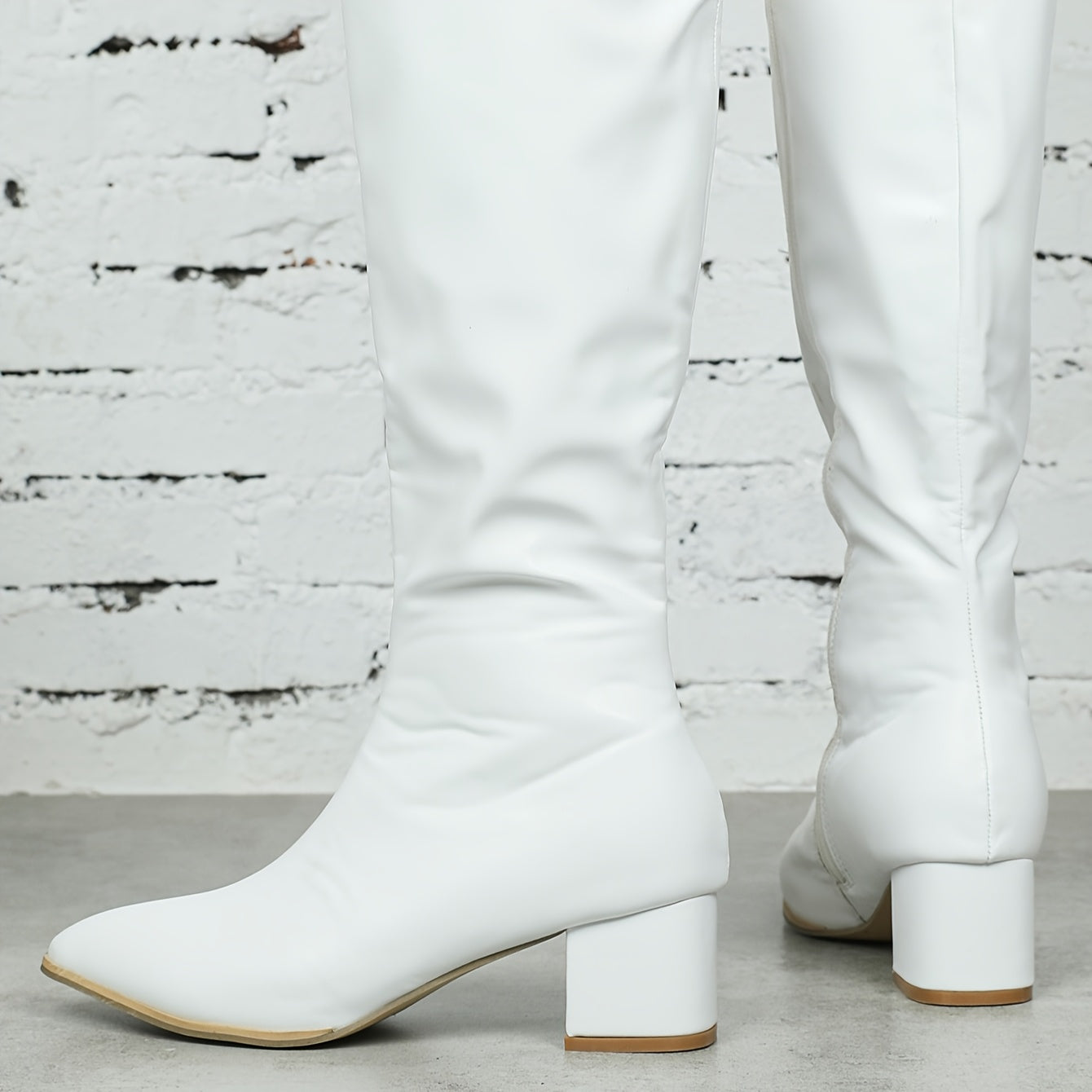 Women's Black Ankle Boots with Block Heel Pointed Toe Zipper