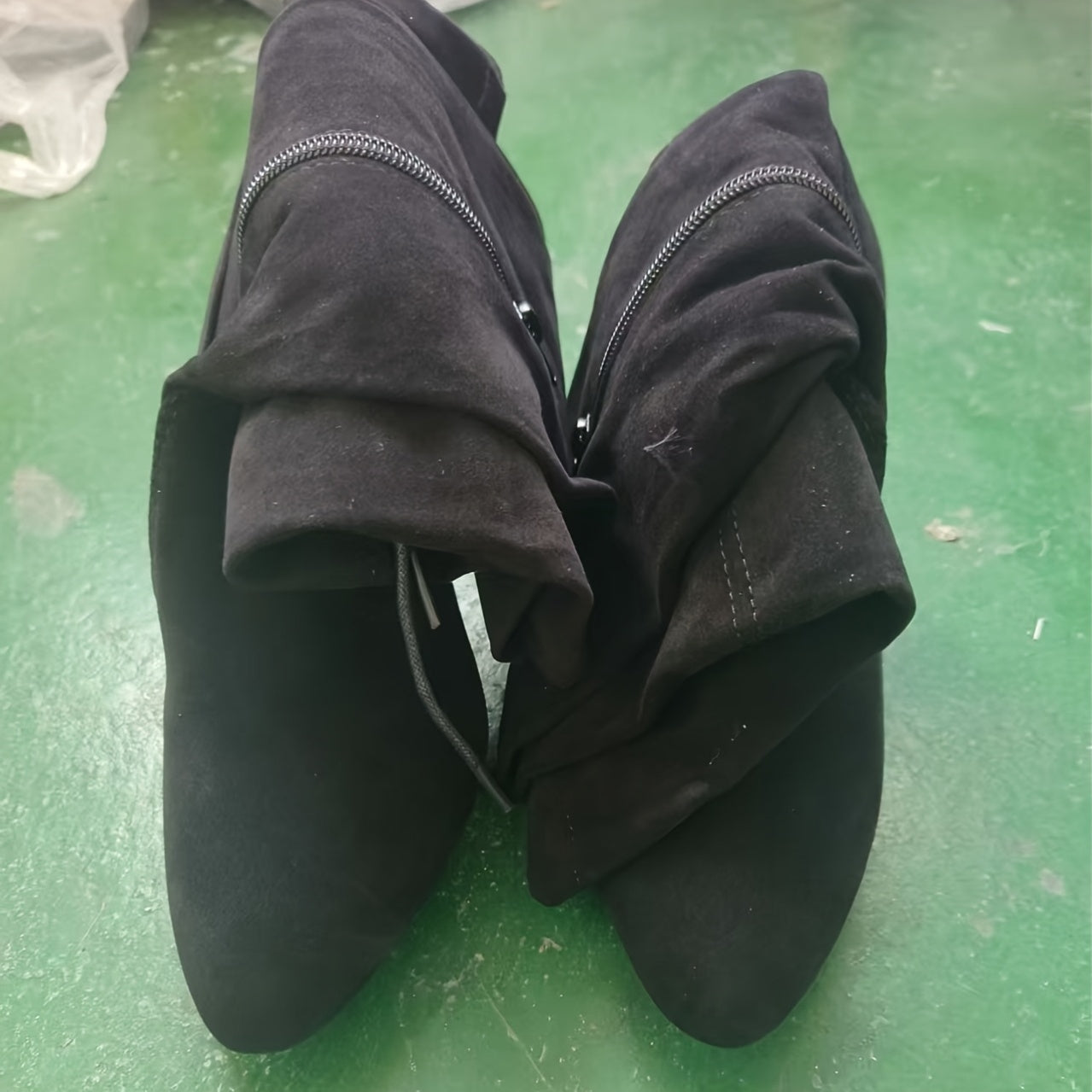 Women's Black Over-the-Knee Leather Boots with Pointed Toe and High Heel