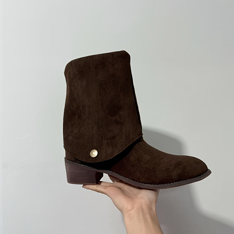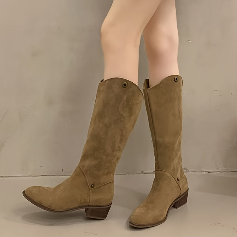 Women's Black Pointed Toe Chunky Heel Knee-High Winter Boots