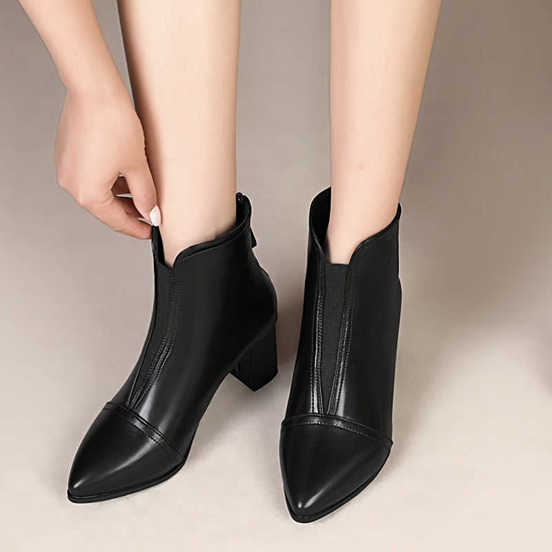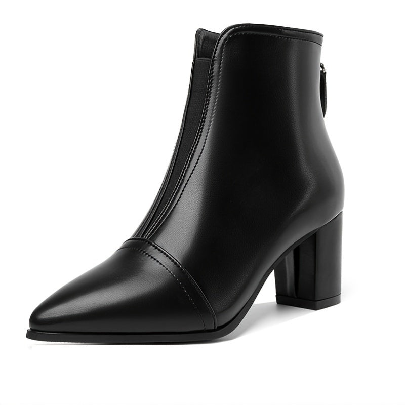 Women's Black Pointed Toe High Heel Boots Waterproof Zipper Back