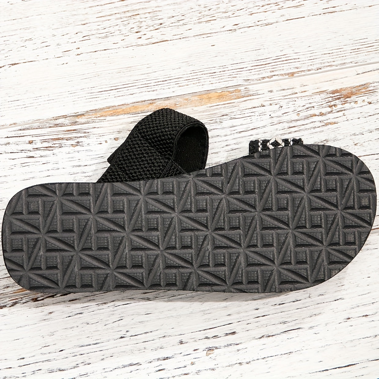 Women's Black Wedge Sandals with Diamond Lace-Up Design EVA Sole Linen Upper