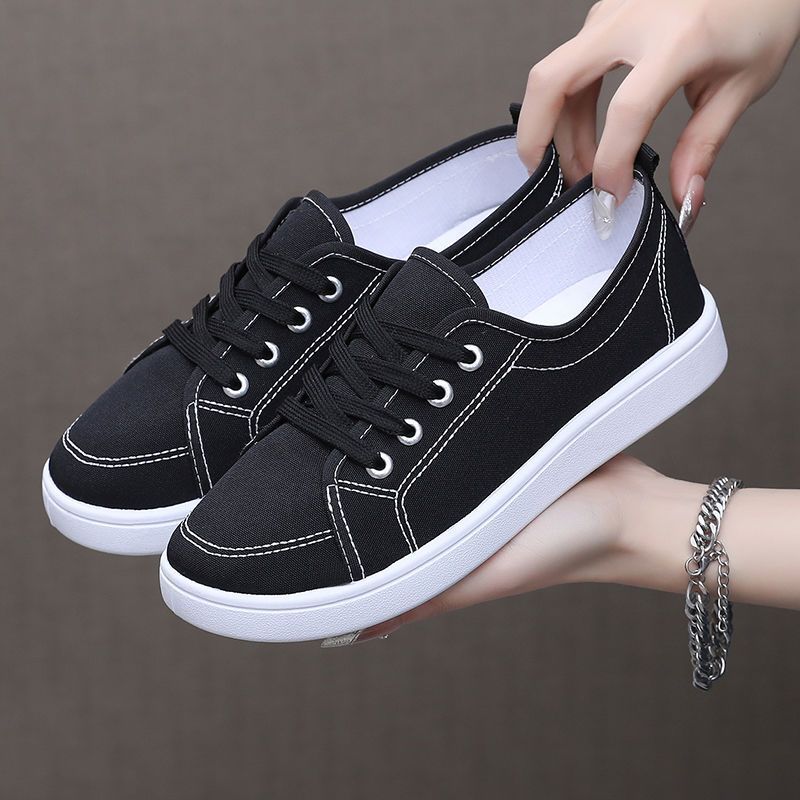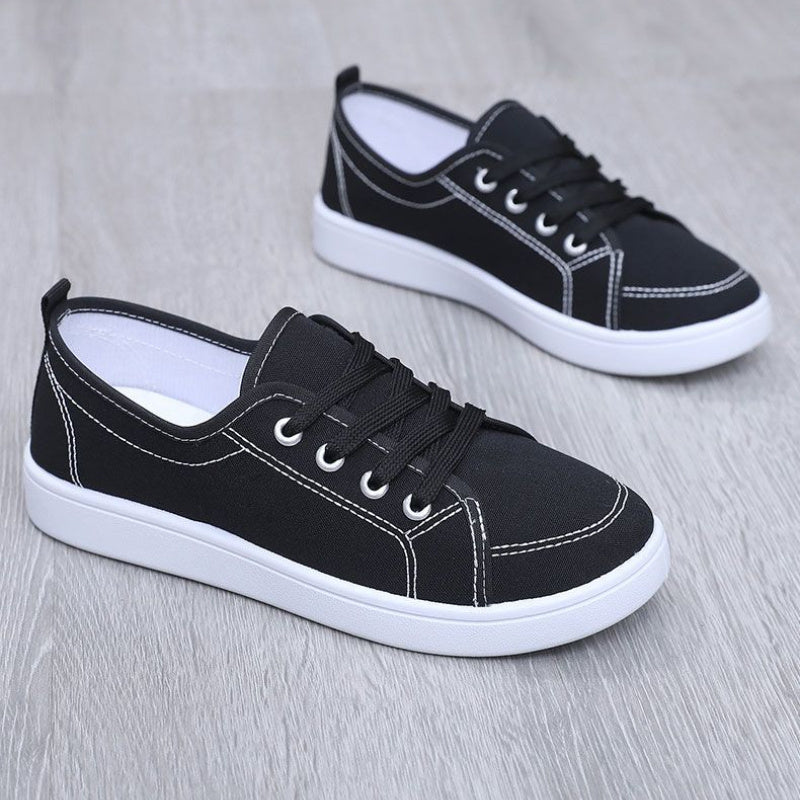 Women's Breathable Casual Sneakers Flat Sole Black White Contrast Stitching