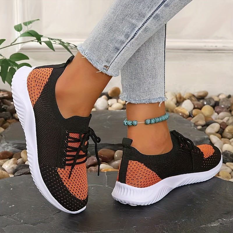 Women's Breathable Knit Sneakers Lightweight Non-Slip Casual Black Red