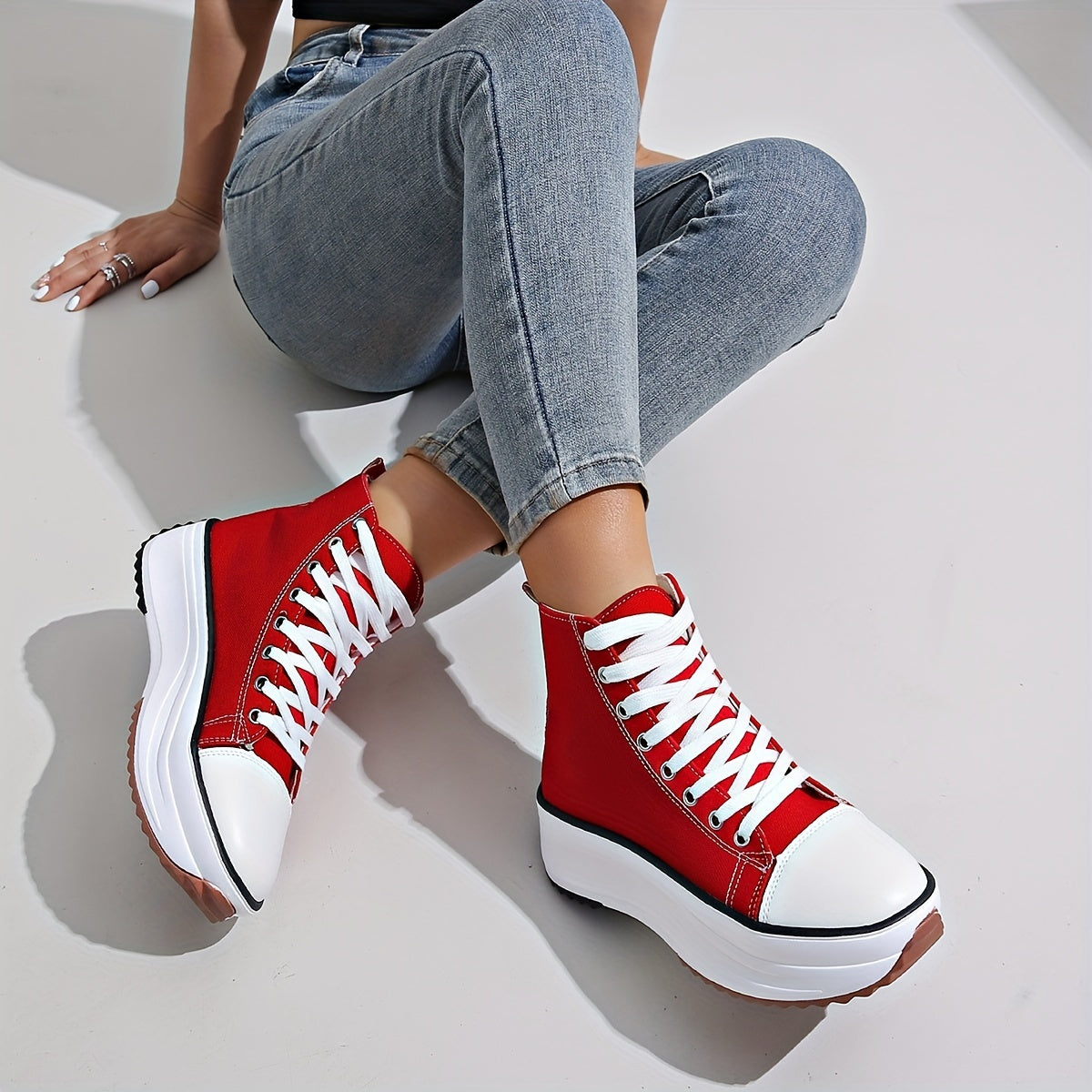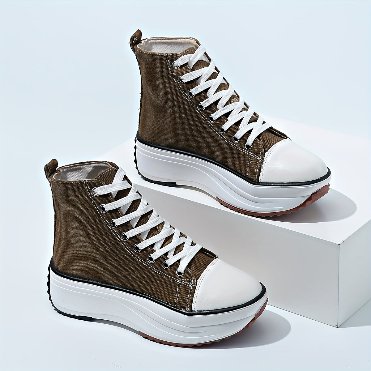 Women's Camouflage High Top Canvas Sneakers With Round Toe Lace Up Platform