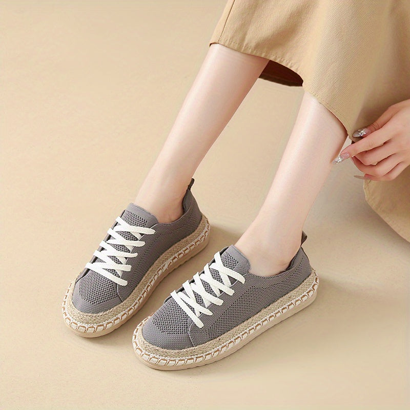Women's Canvas Sneakers Beige Round Toe Lace-Up All-Season Comfort