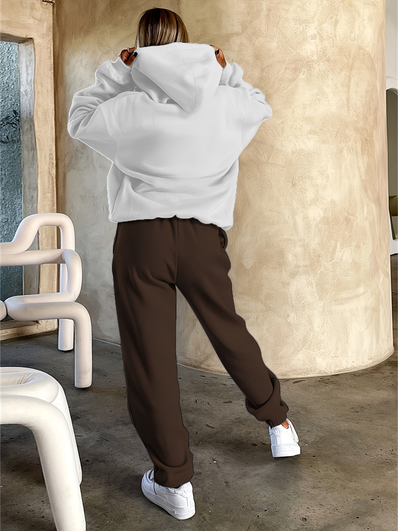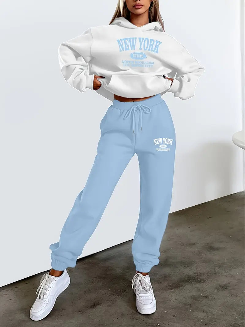 Women's Casual 2-Piece Set Long Sleeve Hooded Sweatshirt and Pants Alphabet Pattern Polyester Knit