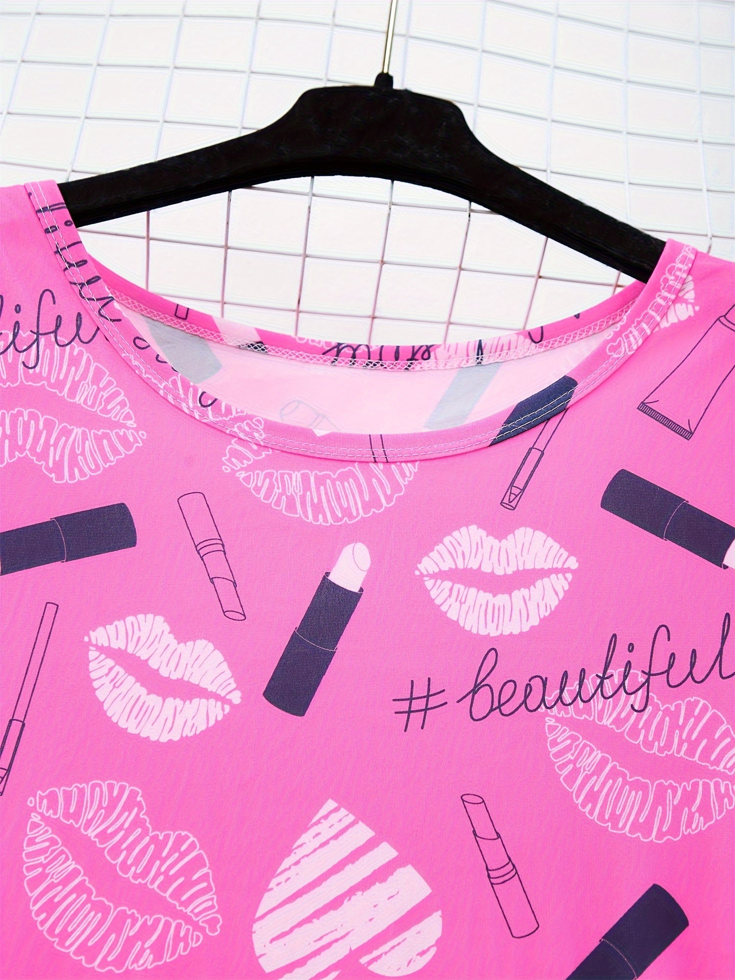 Women's Casual Nightdress Plus Size Red Heart Lip Print Sleep Dress