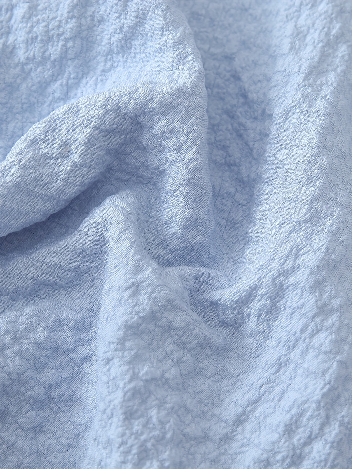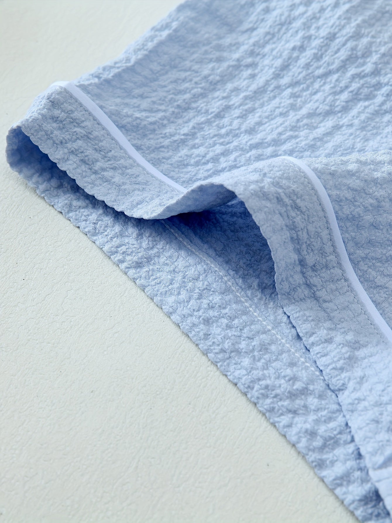 Women's Light Blue Heart Embroidery Pajama Set Short Sleeve Top and Shorts Sleepwear