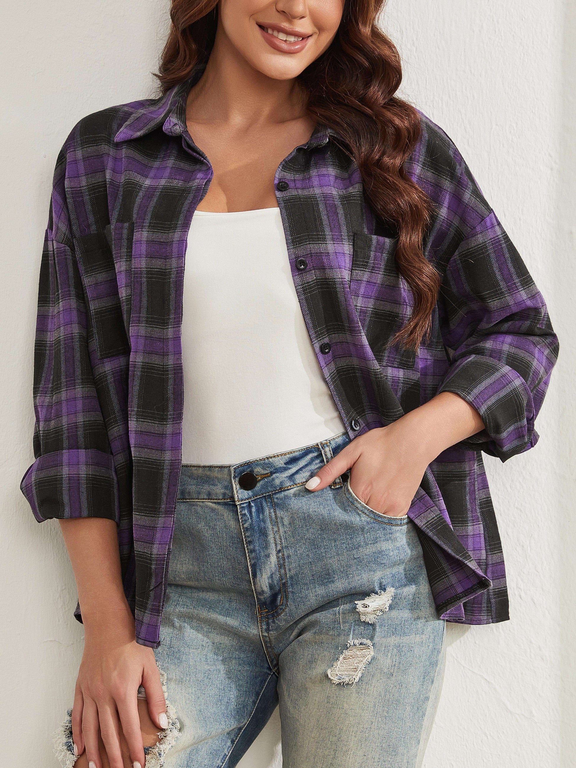 Women's Casual Plaid Long Sleeve Shirt Polyester Spring/Fall Button Collar