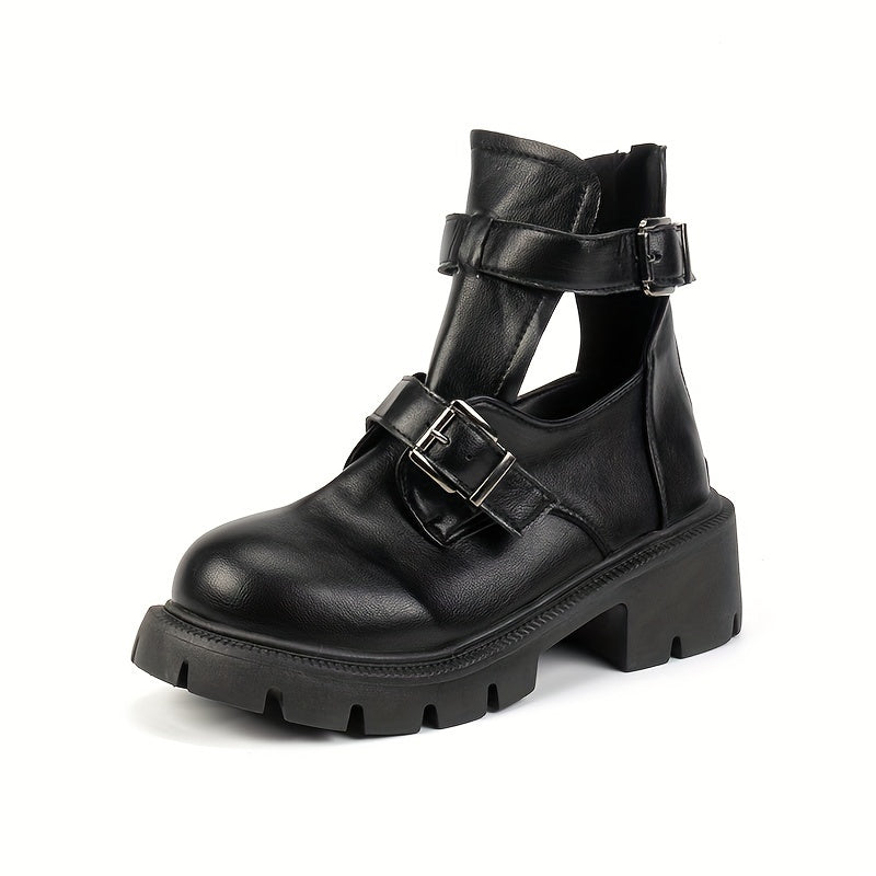 Women's Casual Short Boots Thick Heel Anti-Slip Buckle Zipper British Style