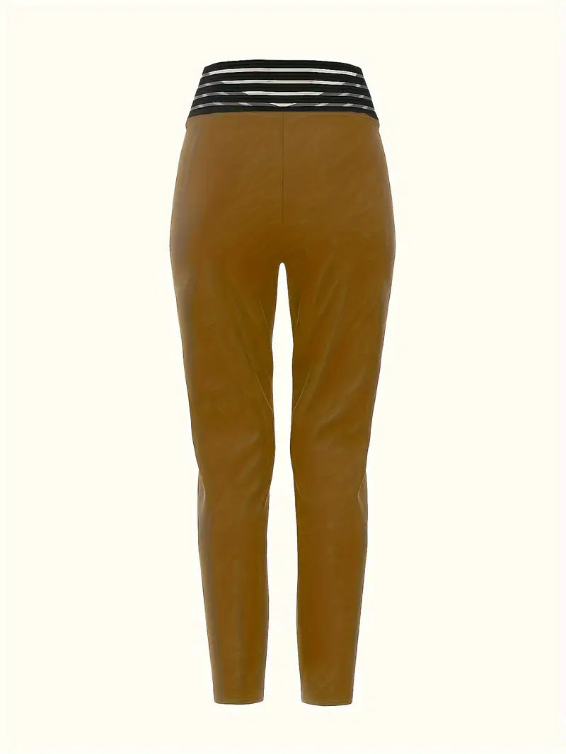Women's High-Waist Trousers Ankle-Length Solid Black Polyester Casual Elegant