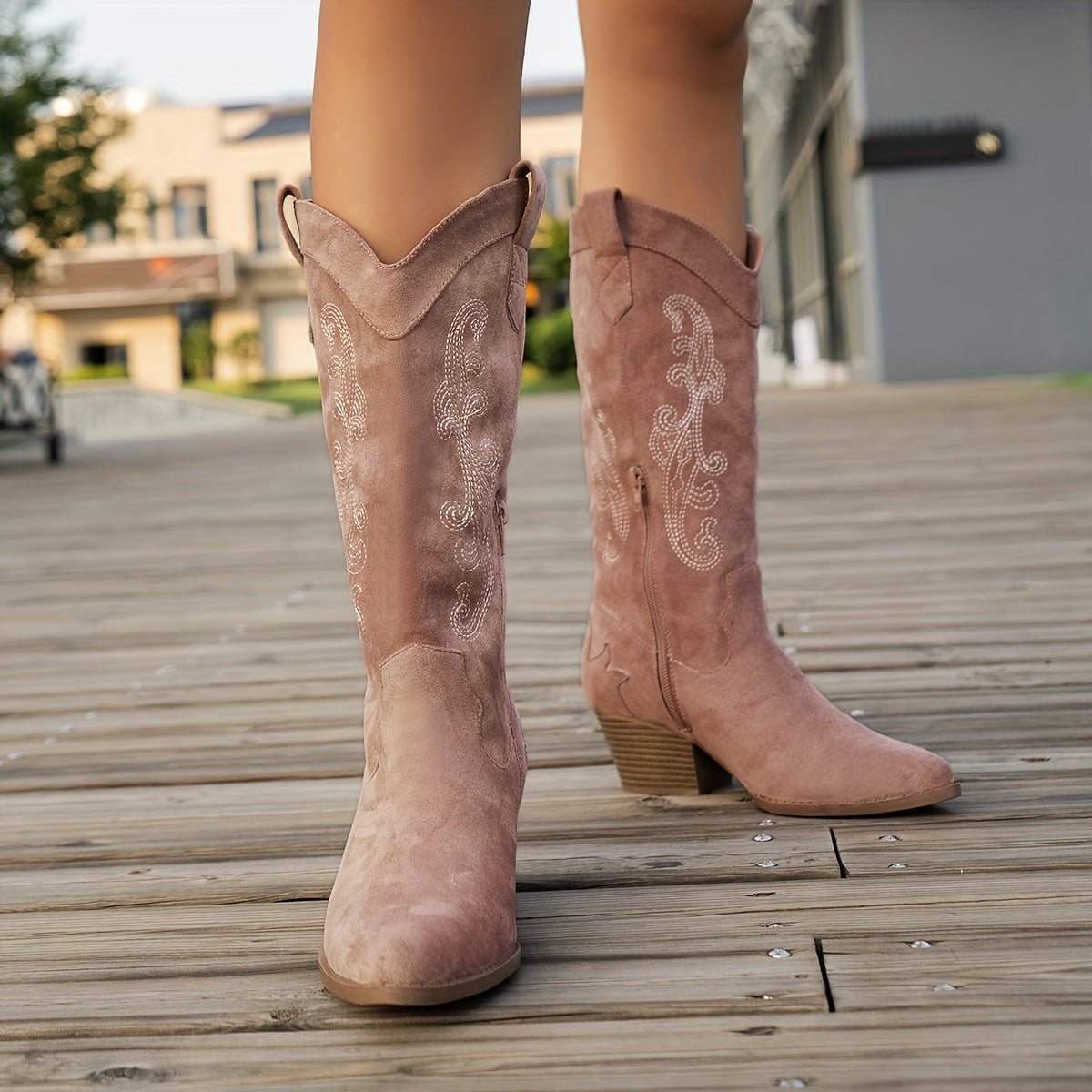 Women's Chunky Heel Boots Point Toe Side Zipper Comfortable Shoes
