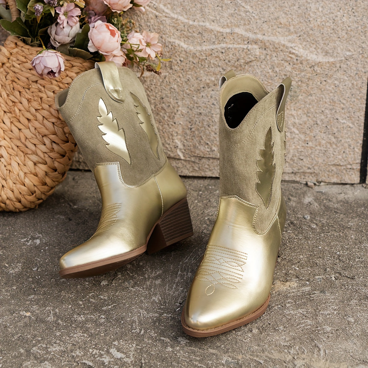 Women's Chunky Heel Cowboy Boots Slip-On Western Footwear