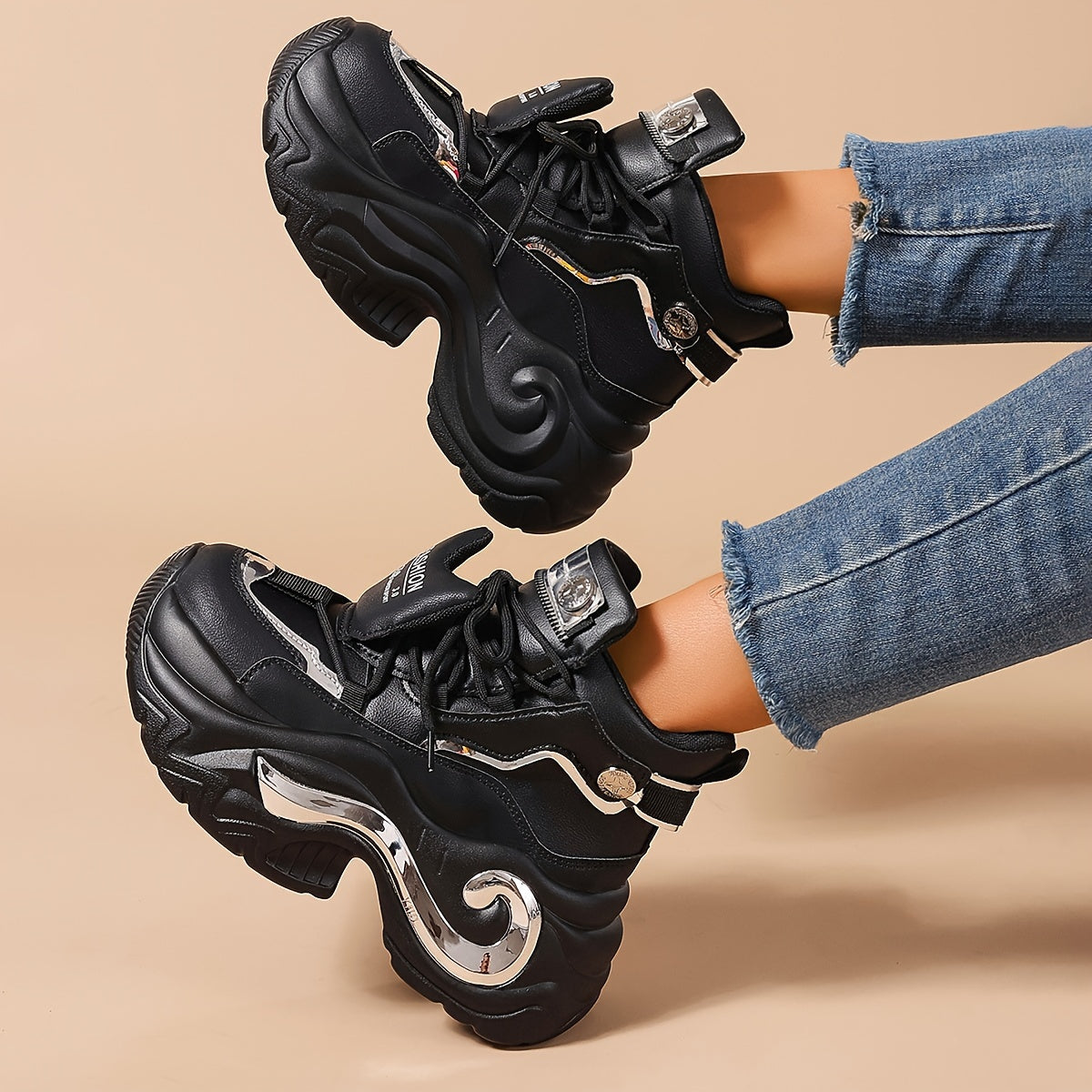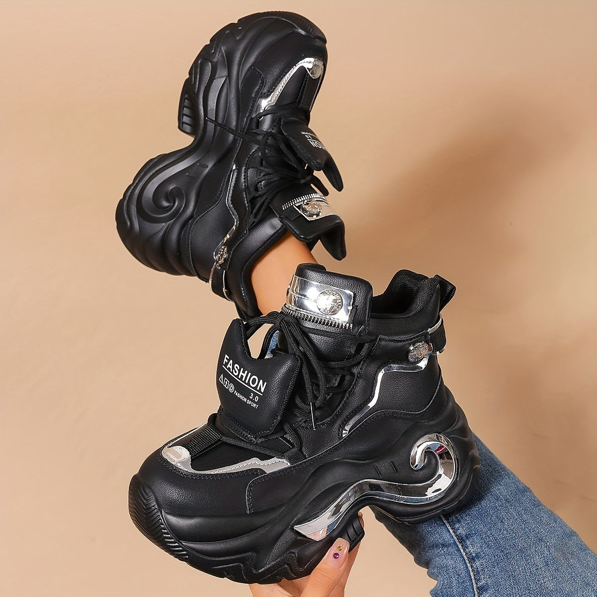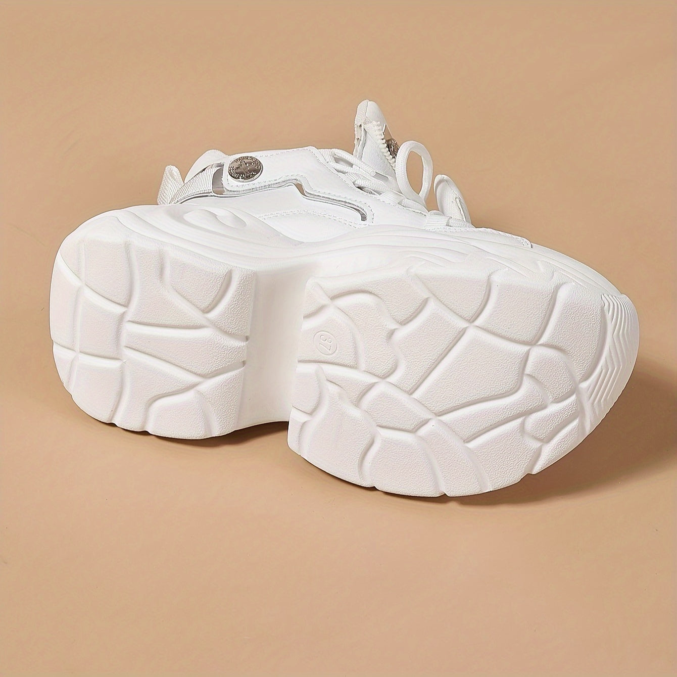 Women's Chunky Platform Sneakers High-Top Lace-Up White Casual Shoes