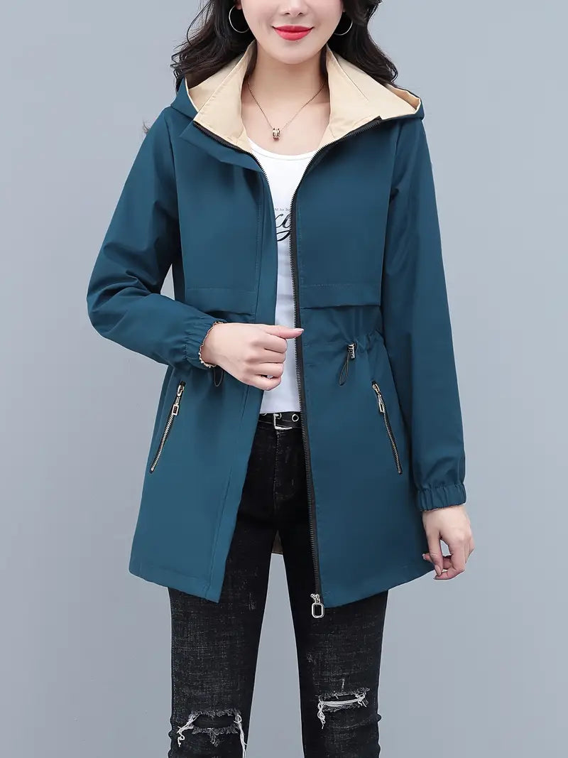 Women's Color Block Windbreaker Hoodie Jacket with Zipper Pockets for Spring Fall