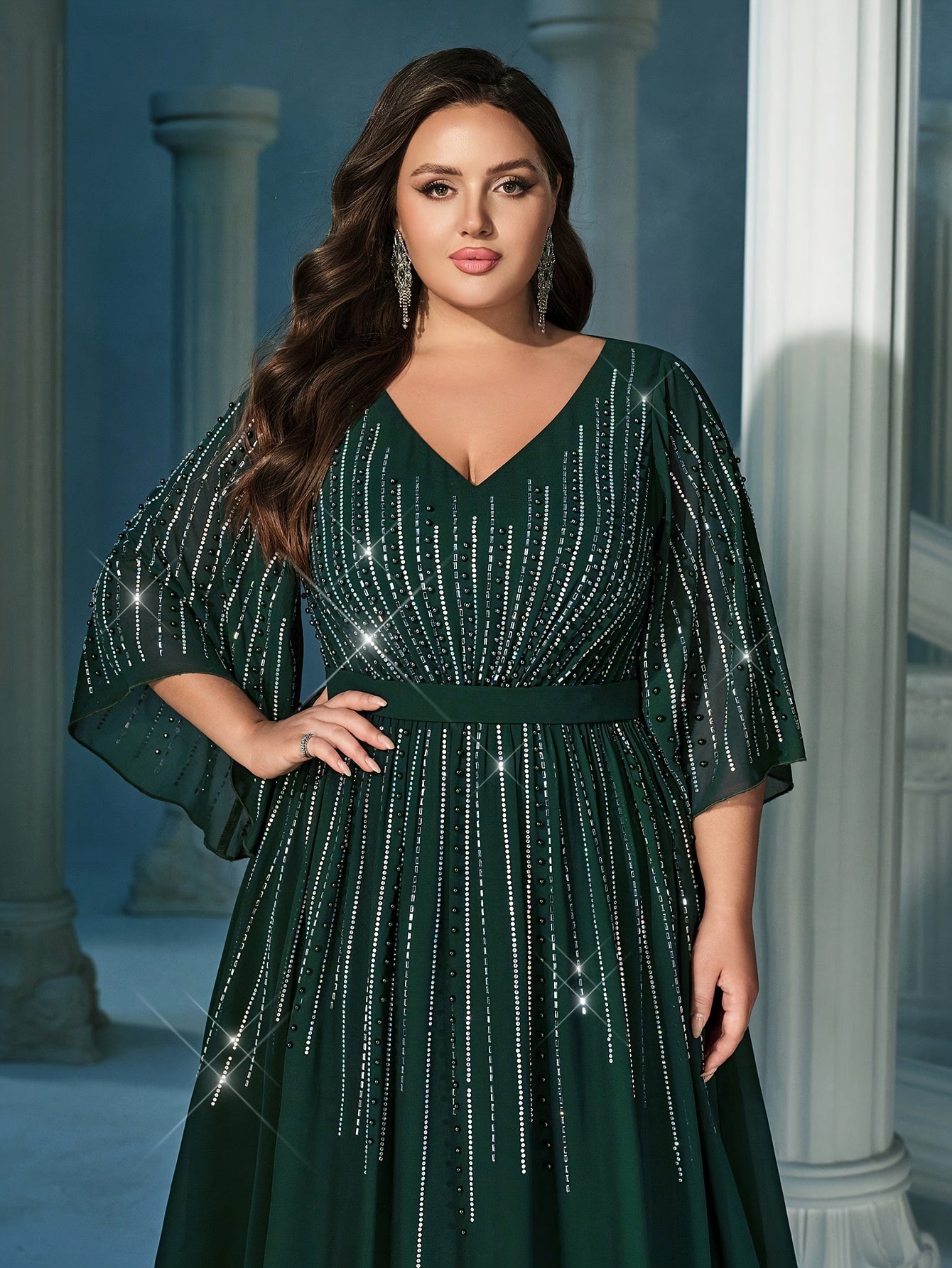 Women's Dark Green Plus Size Chiffon Formal Gown for Party Banquet
