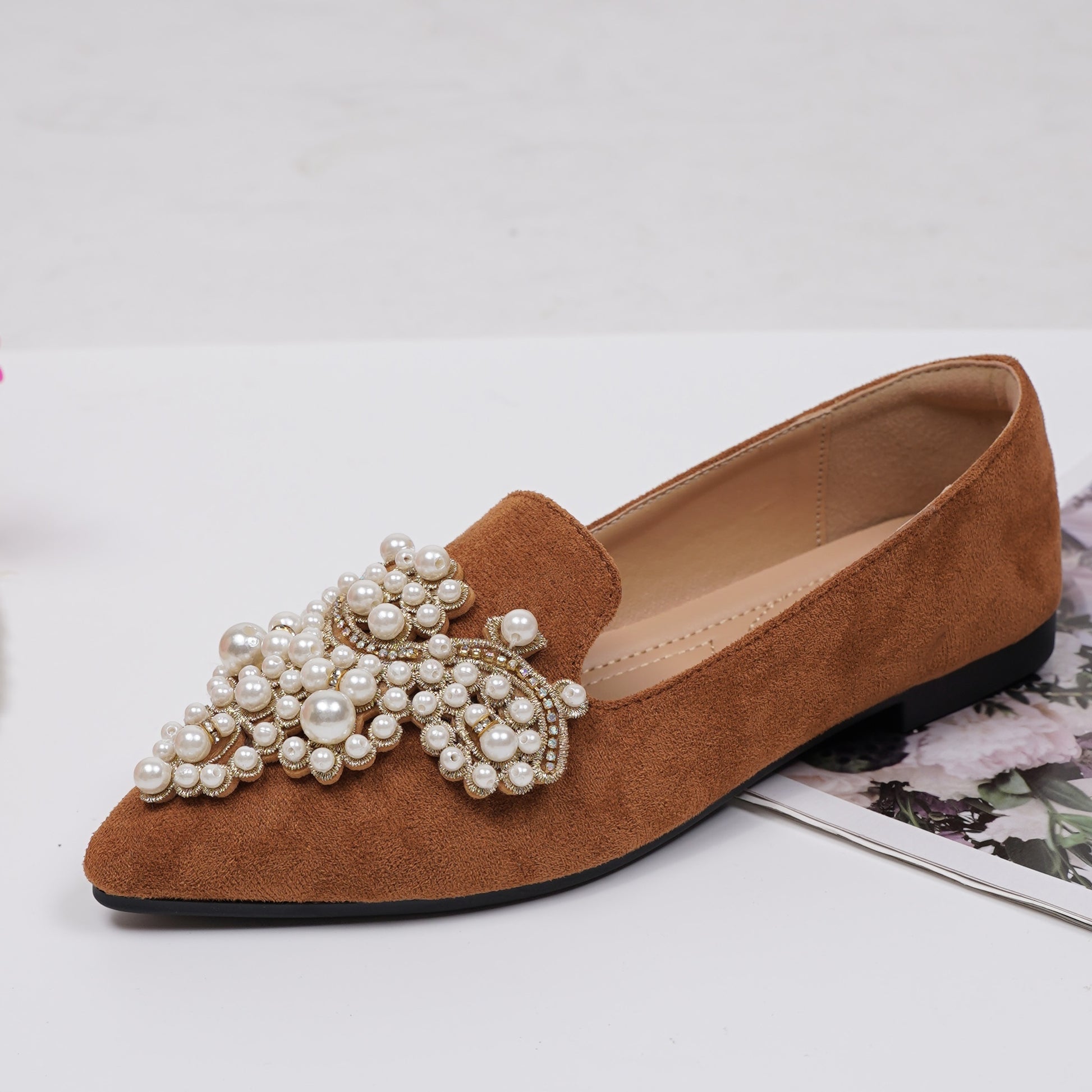 Women's Flat Shoes Faux Pearl Pointed Toe Slip-On Lightweight All-Season