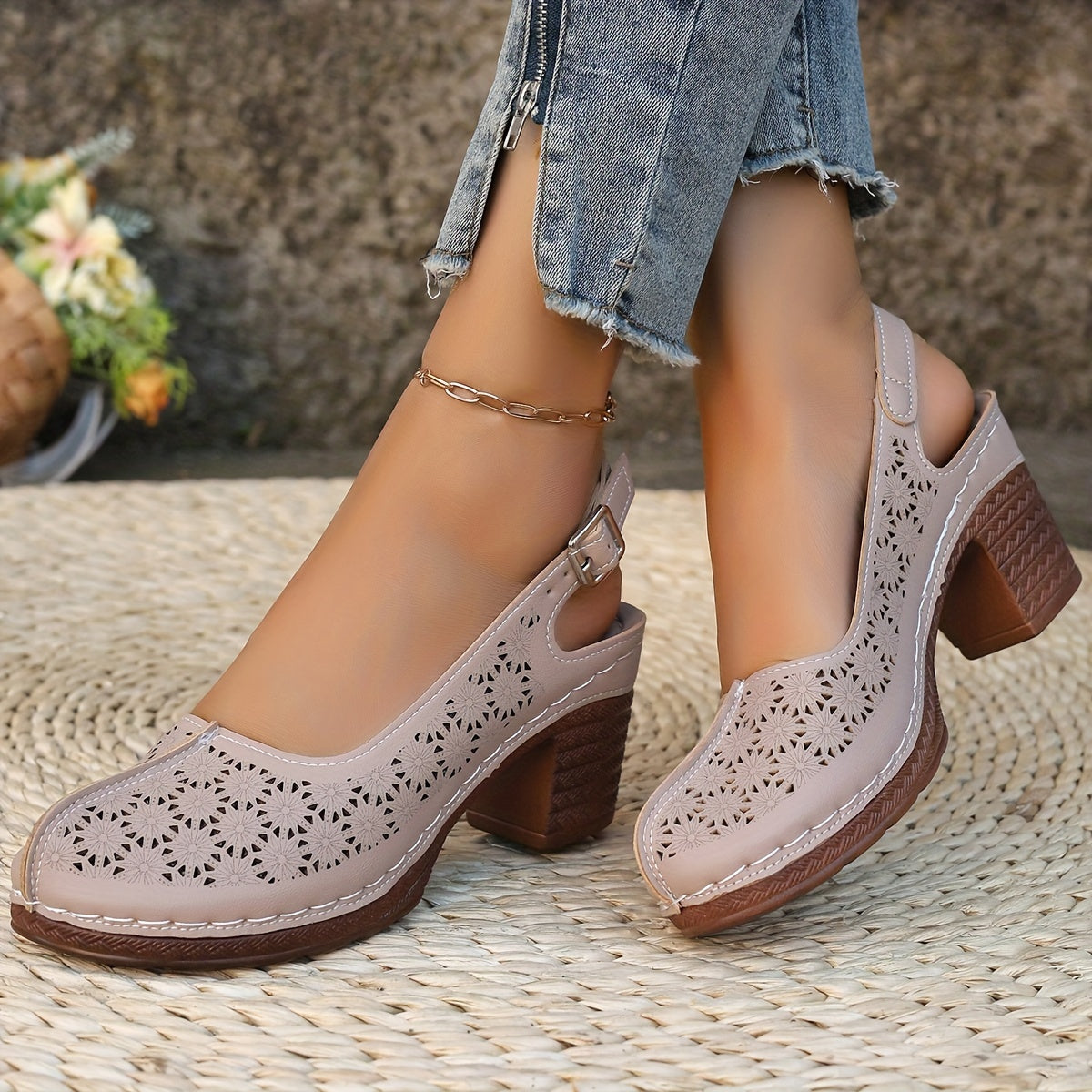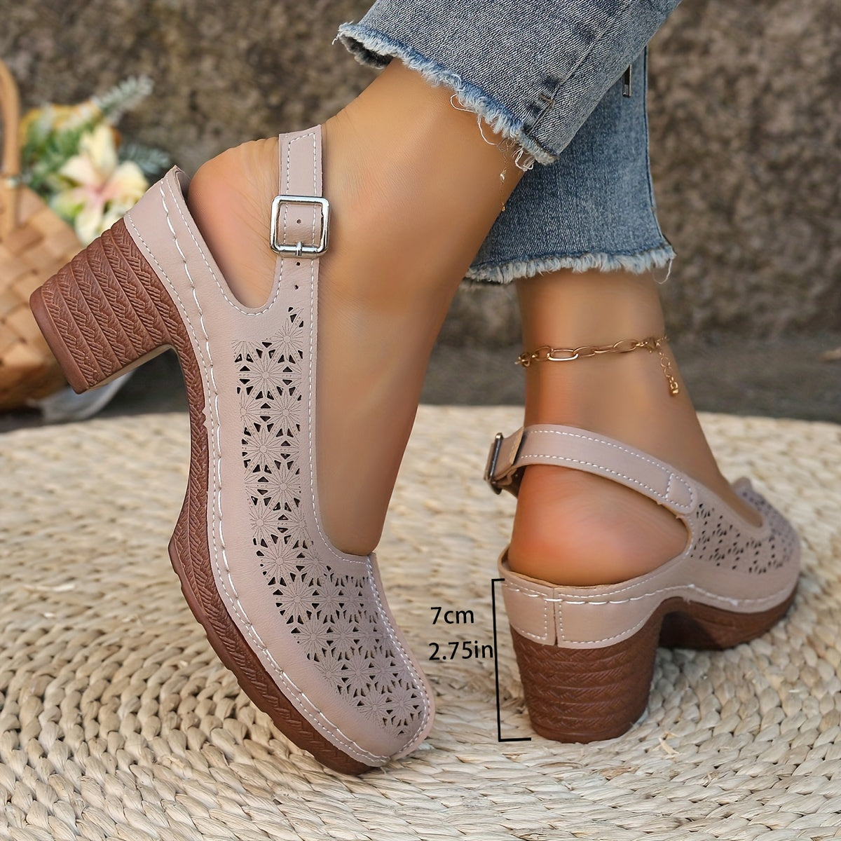Women's Elegant Hollow-Out Sandals with Closed Toe Block Heel Breathable Fabric