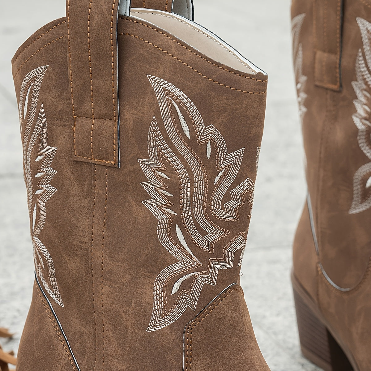 Women's Embroidered Faux Leather Mid-Calf Cowboy Boots for All Seasons