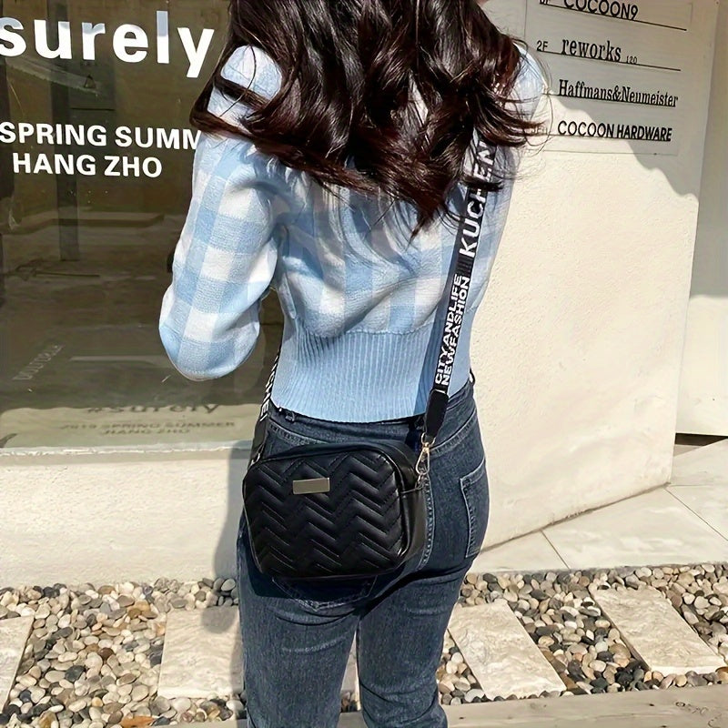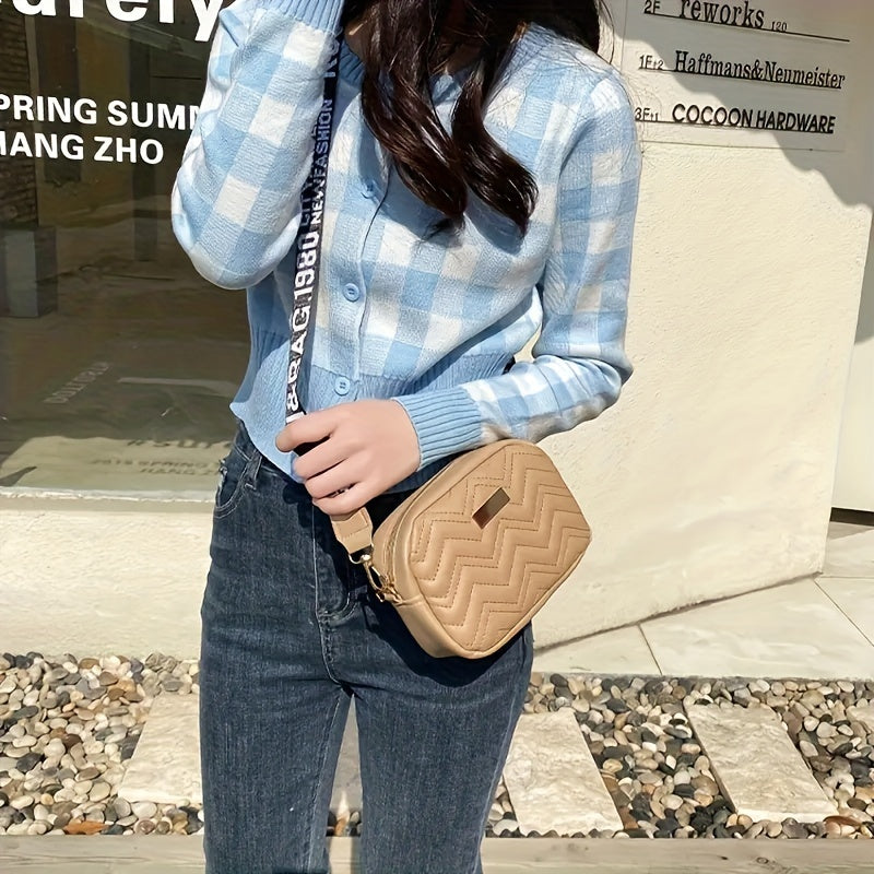 Women's Crossbody Bag Faux Leather Stain-Resistant Zippered Camera Style in Black White Khaki