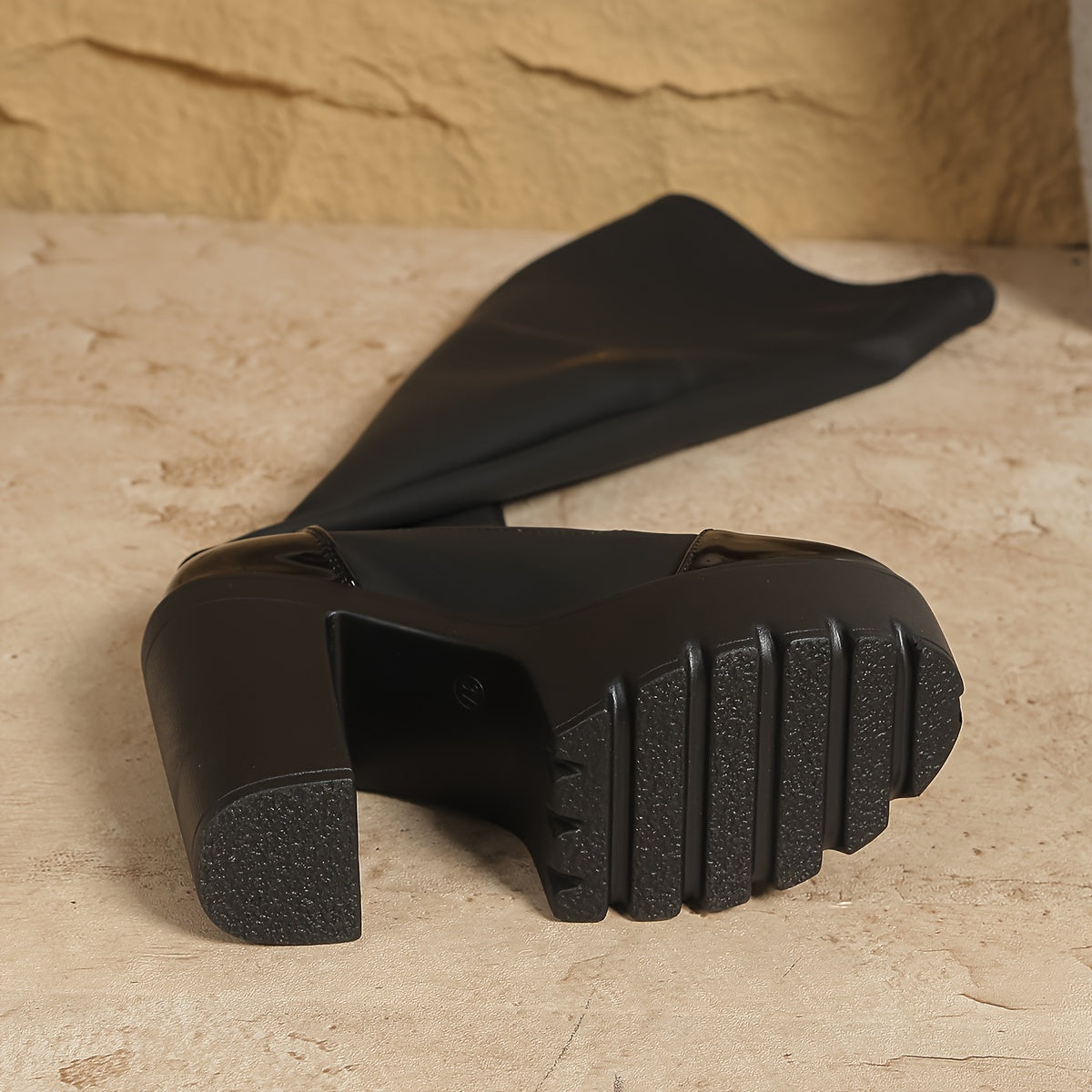 Women’s Faux Leather Chunky Heel Platform Knee-High Boots Black