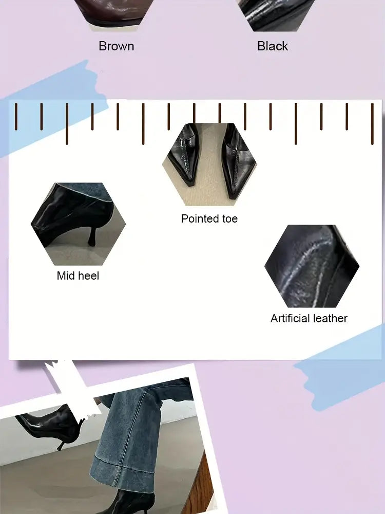 Women's Faux Leather Pointed Toe Stiletto Boots Brown Slim Fit Winter Footwear