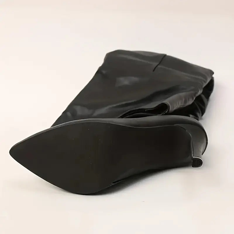 Women's Faux Leather Stiletto Heel Boots with Pointed Toe and Side Zipper