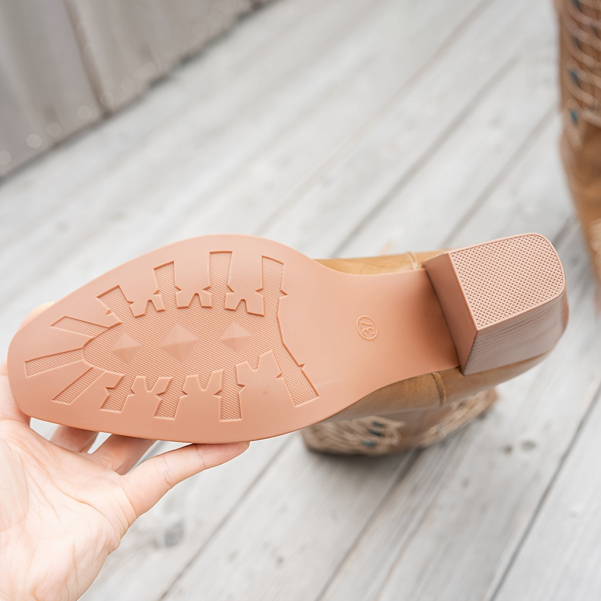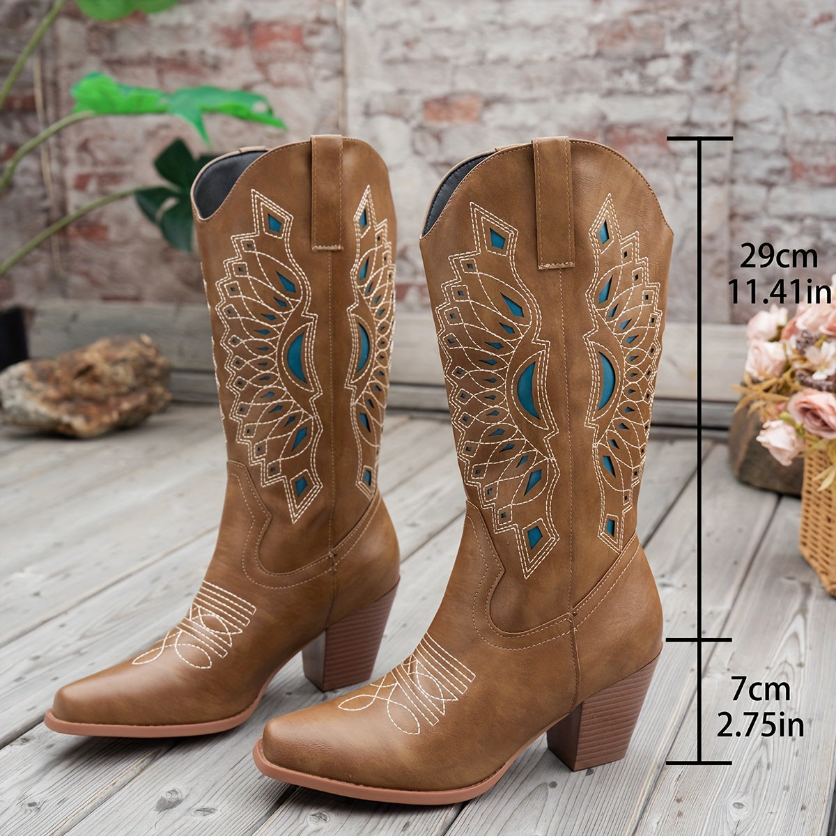 Women's Faux Leather Western Cowboy Boots Slip-On Pointed Toe Chunky Heel Blue and Brown
