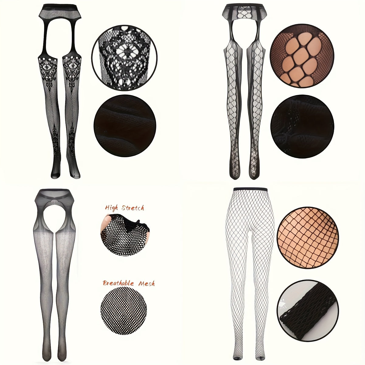 Women's Fishnet Stockings Set with Garter Belts and Thong