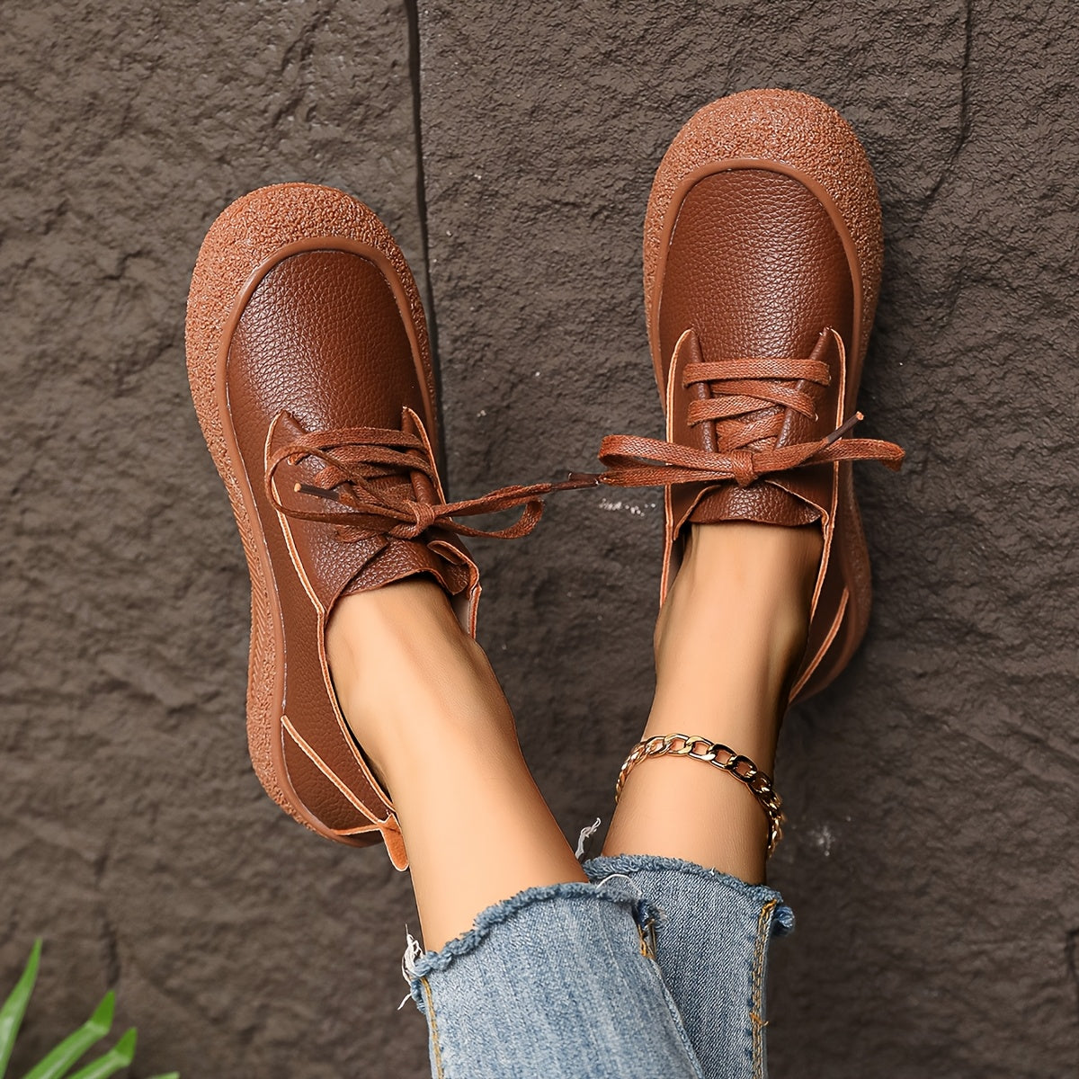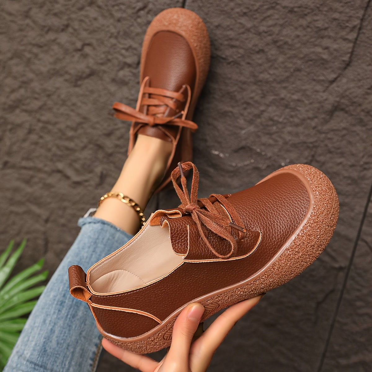 Women's Flat Shoes Leather-Style Casual Shoes Comfortable Red All-Season
