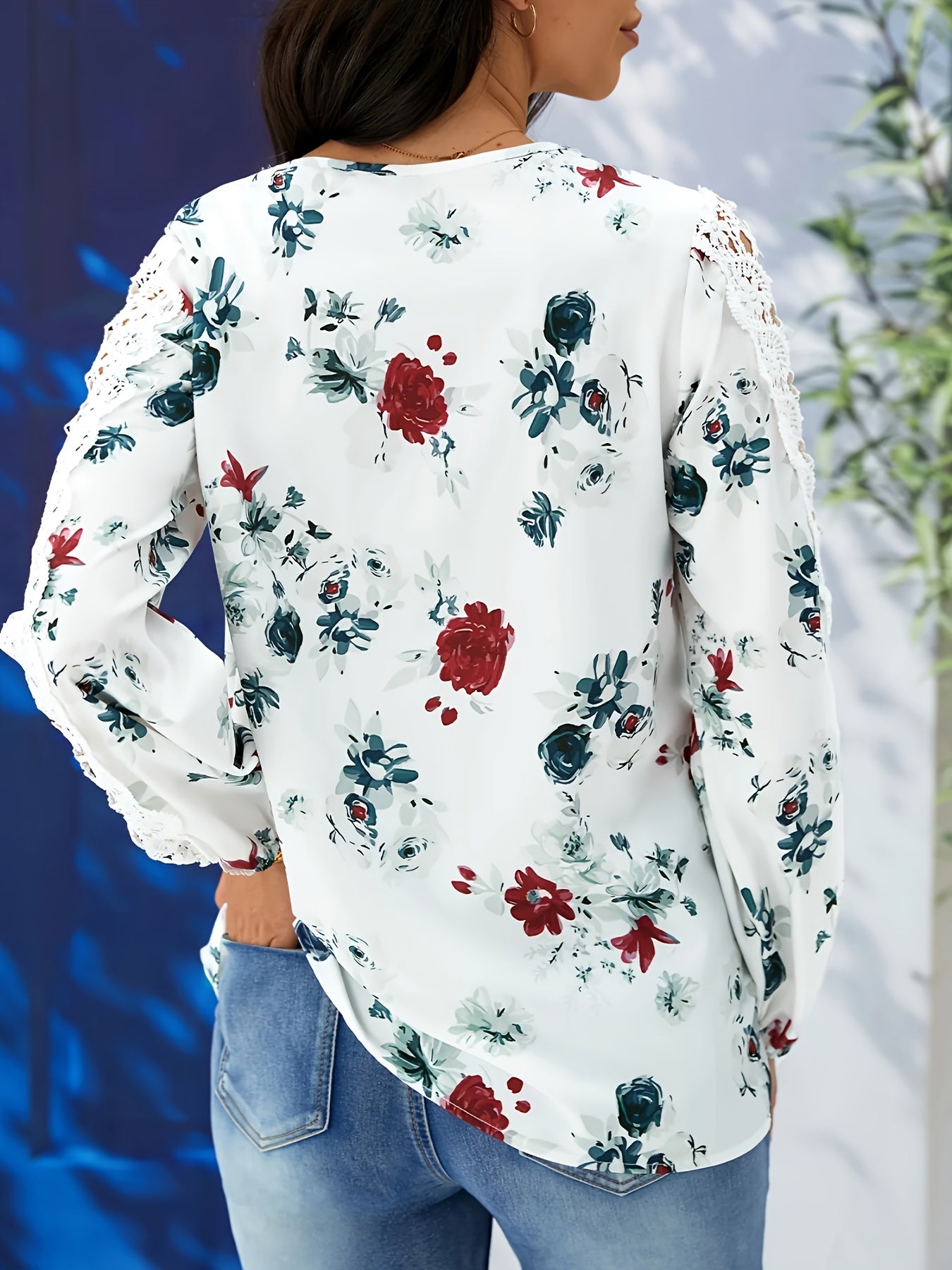 Women's Floral Lace Blouse V-Neck Ruffle Spring Summer Fall