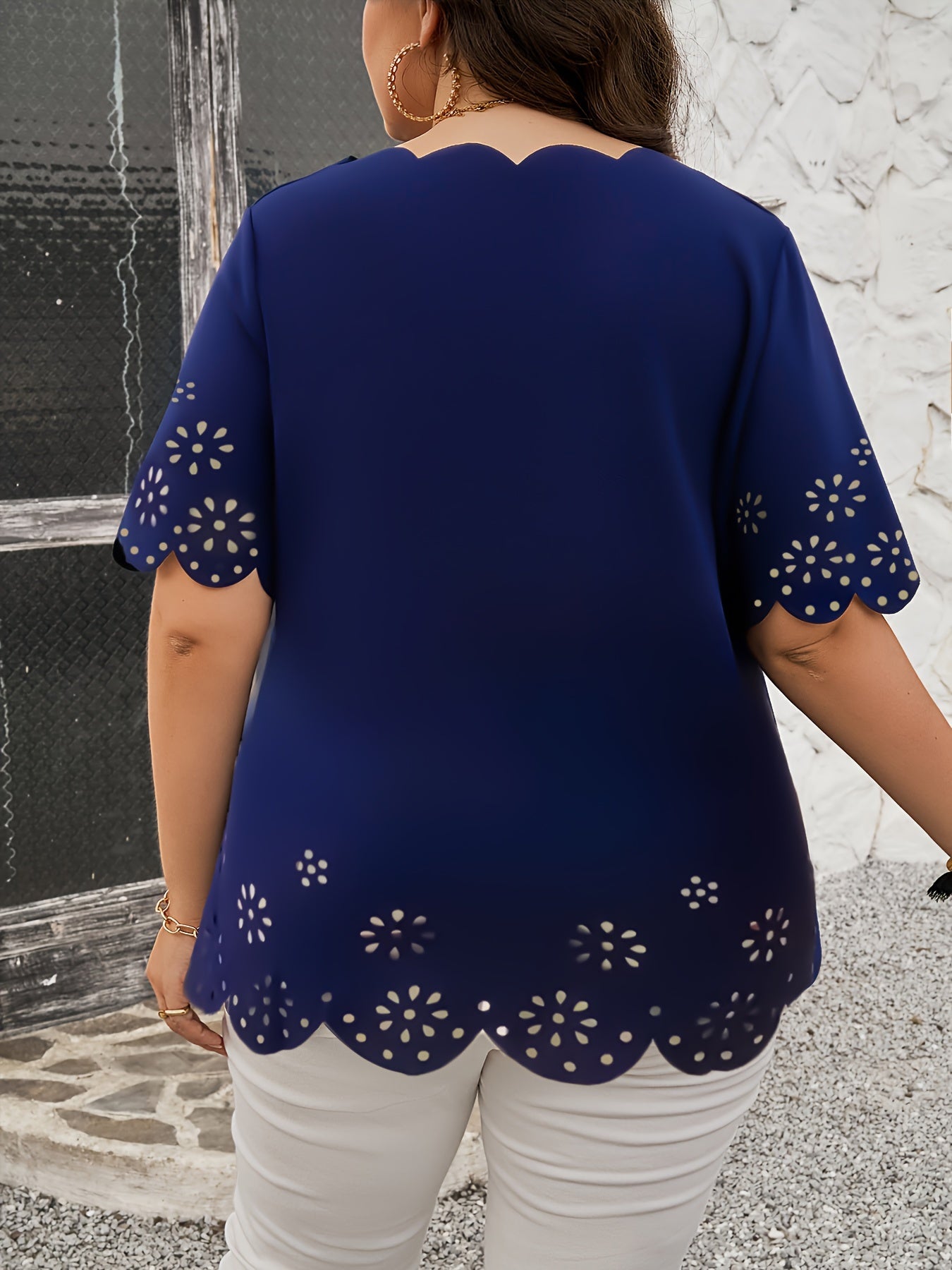 Women's Floral Lace Top Burnt Orange Sheer Short Sleeve Blouse
