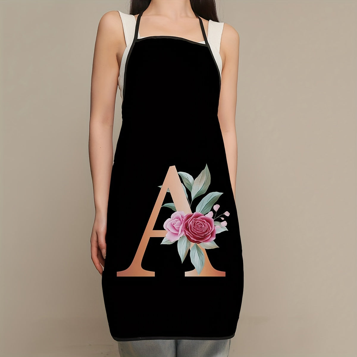 Women's Polyester Apron with Flower and Letter Print Waterproof Thickened Kitchen Cooking Cooking Apron