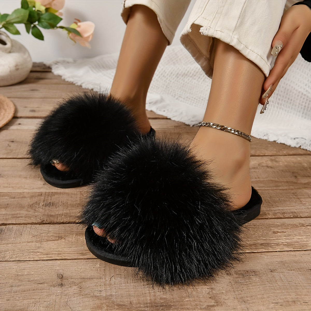 Women's Fluffy Plush Open Toe House Slippers Cozy Warm Solid Color