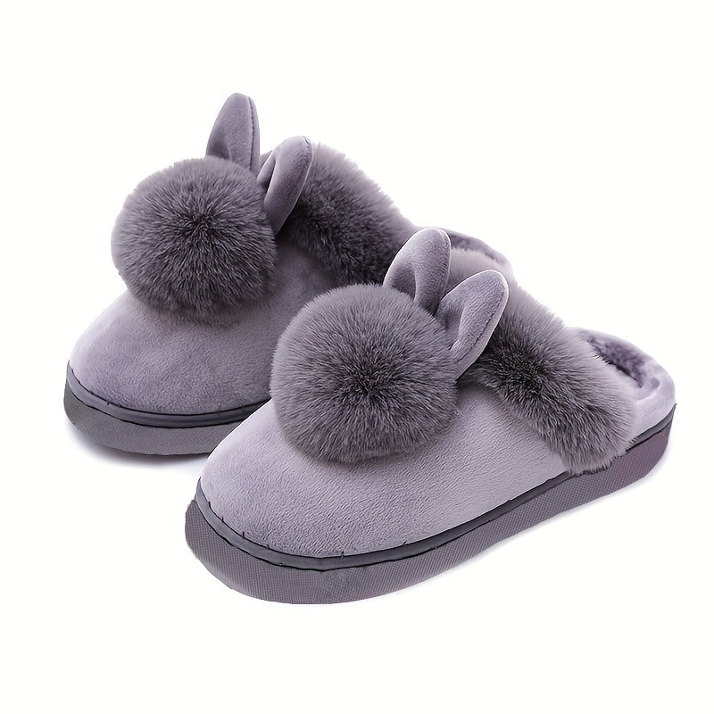 Women's Fuzzy Bunny Pom Pom House Slippers Closed Toe Soft Sole Winter Warm