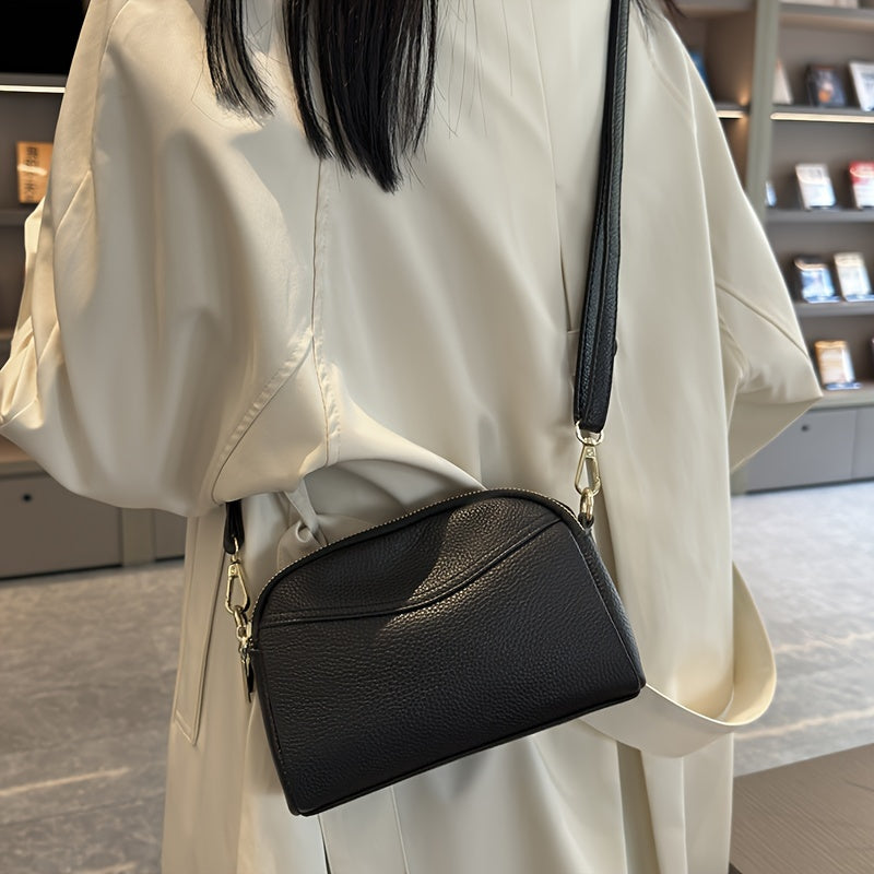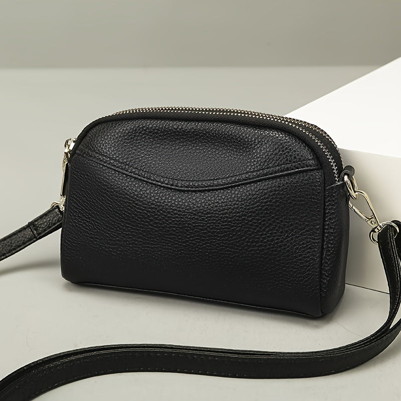 Women's Genuine Leather Crossbody Bag Solid Color Zipper Closure Adjustable Strap Polyester Lining Black White