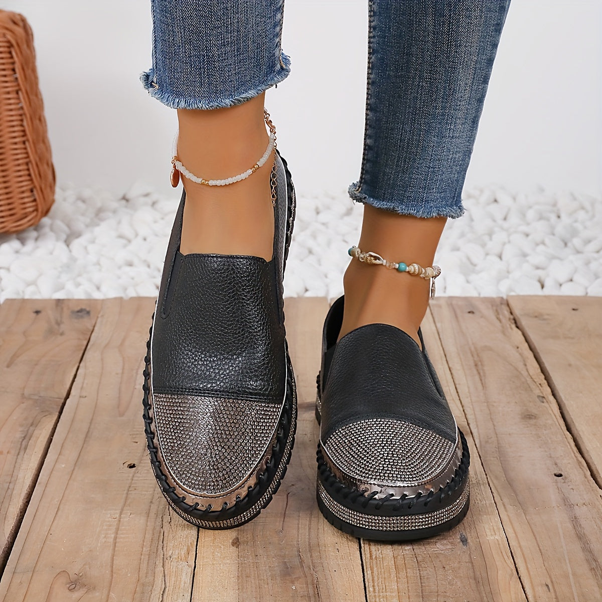 Women's Glitter Flats, Solid Color Slip-On Loafers, Comfortable Platform Shoes