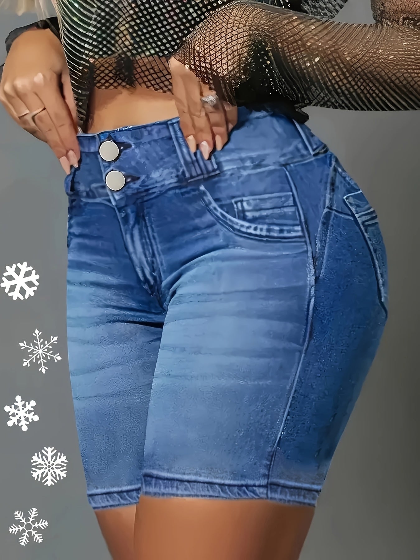 Women's High Stretch Denim Bermuda Shorts Solid Color Washed Jean Spring Summer High Waisted