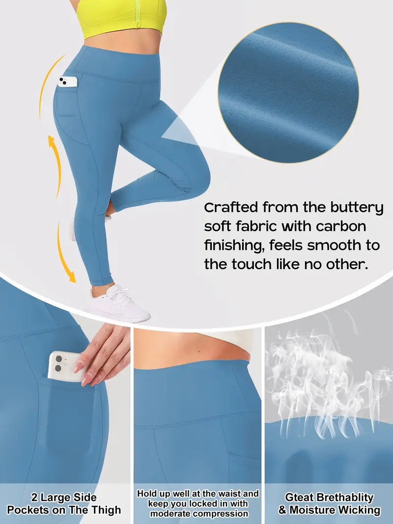 Women's High Waist Tummy Control Yoga Leggings with Pockets Red