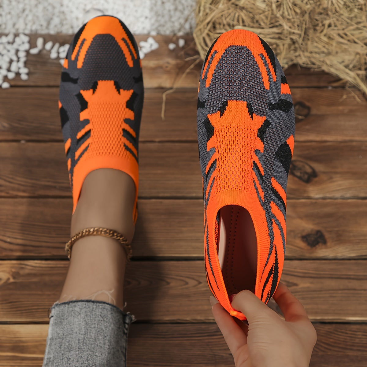 Women's Knit Slip-On Flats Breathable Casual Shoes in Maroon Black/White