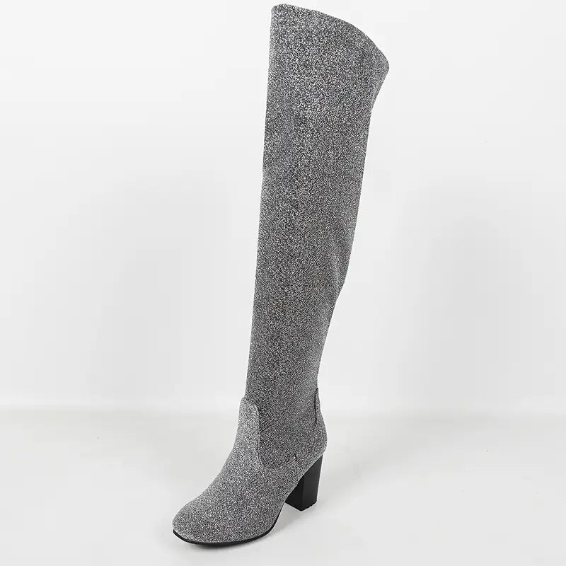 Women's Knitted Knee High Boots Slip-Resistant Rubber Sole Winter Footwear